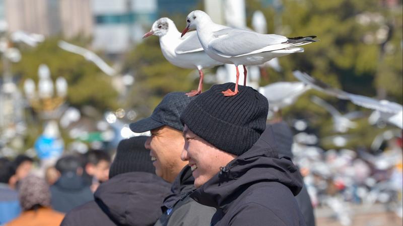 文章季节限定!在青岛,get一张海鸥“零距离”同框照